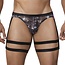 • Daring navy blue mens jockstrap with a white star pattern and red details.
