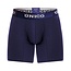The Mundo Unico Profundo boxershort has a darkblue cotton fabric with a darkblue elastic waistband with Unico's logo in white. The legs are long down to just above the knee. A mens boxershort with style!